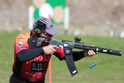 IPSC Gevär i Open divisionen skjuter jag en AR15 SunDevil med Trijicon TR 24 kikare med 1-4 ggr förstorning och ett sidomonterat Trijicon RMR sikte för skytte på kort håll.